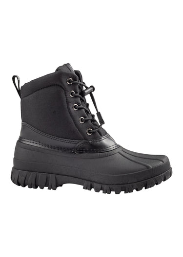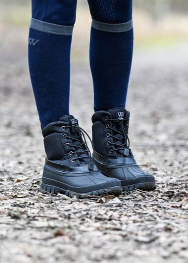 Built for winter work and unpredictable weather, the Laced Yard Boot is a practical essential for everyday yard life. Whether you're turning out horses, mucking out stables, or walking across wet fields, this boot delivers warmth, protection and grip where you need it most. Crafted with a durable TPR galosh and a soft fleece lining, it keeps your feet warm, dry and comfortable in cold, damp conditions. The flexible yet tough construction allows for ease of movement, while the chunky deep tread offers enhanced grip on slippery or uneven terrain. Adjustable bungee-style elastic laces ensure a secure, customizable fit, making these boots easy to slip on and off without sacrificing support.