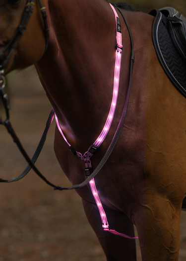 Hi vis pink adjustable neck and girth straps enhance visibility and ensure a secure fit